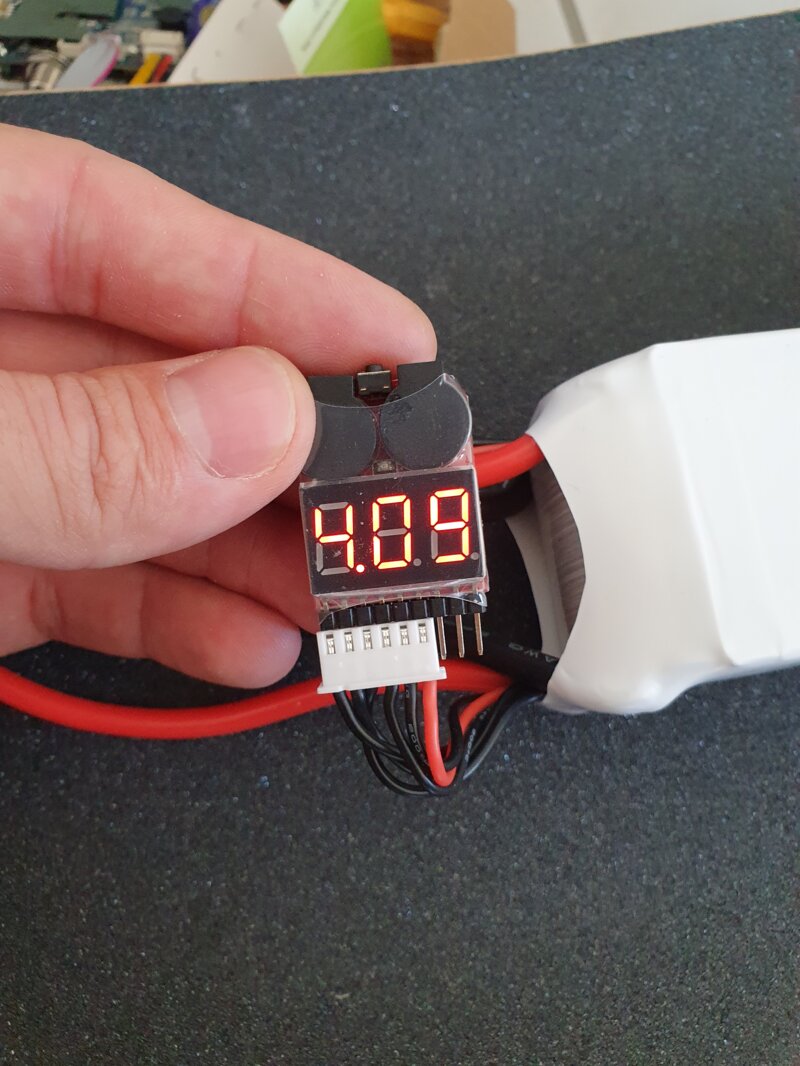 Damit sich mein Board von den Mitbewerbern abhebt, habe ich eine analoge Akkuanzeige in das Brett eingebaut. Parallel dazu überwachen zwei Spannungsprüfer die einzelnen Zellenspannungen. Sollte der eingestellte Wert unterschritten werden, wird der Fahrer akustisch darauf hingewiesen.