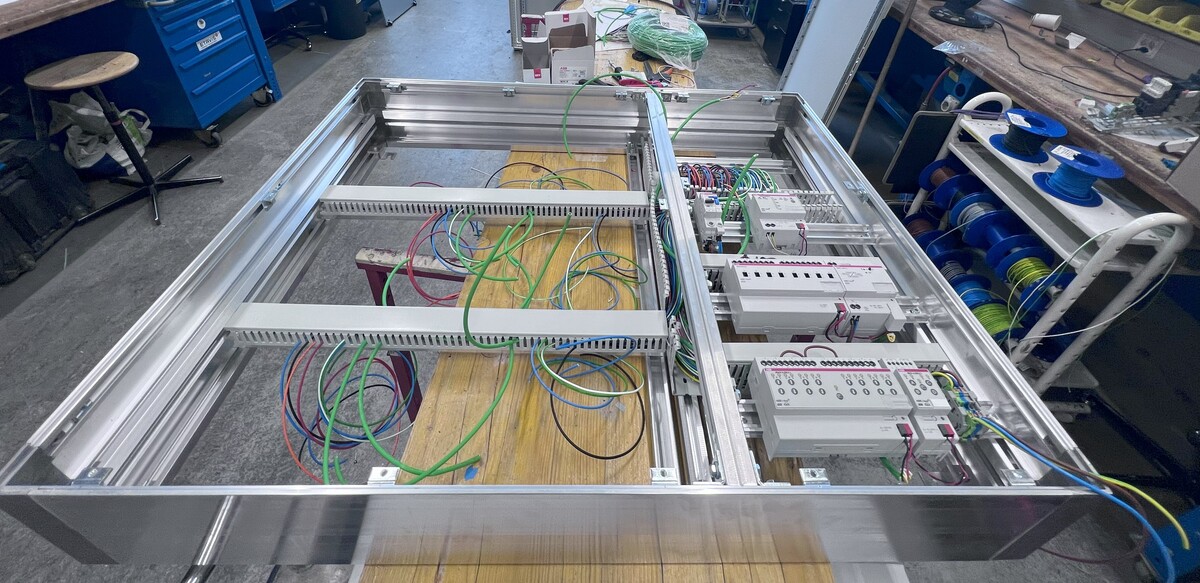Was denkt man, wenn man einem Gebäude ein grünes Buskabel entdeckt? Genau, an KNX-Bussystem. Ein internationaler Standard für Installationen im kommerziellen und privaten Bereich. Das System ermöglicht eine umfassende Steuerung von Energiemanagement, Beleuchtung, Sicherheit, Klimaanlage, Heizung und weiteren Bereiche eines Gebäude