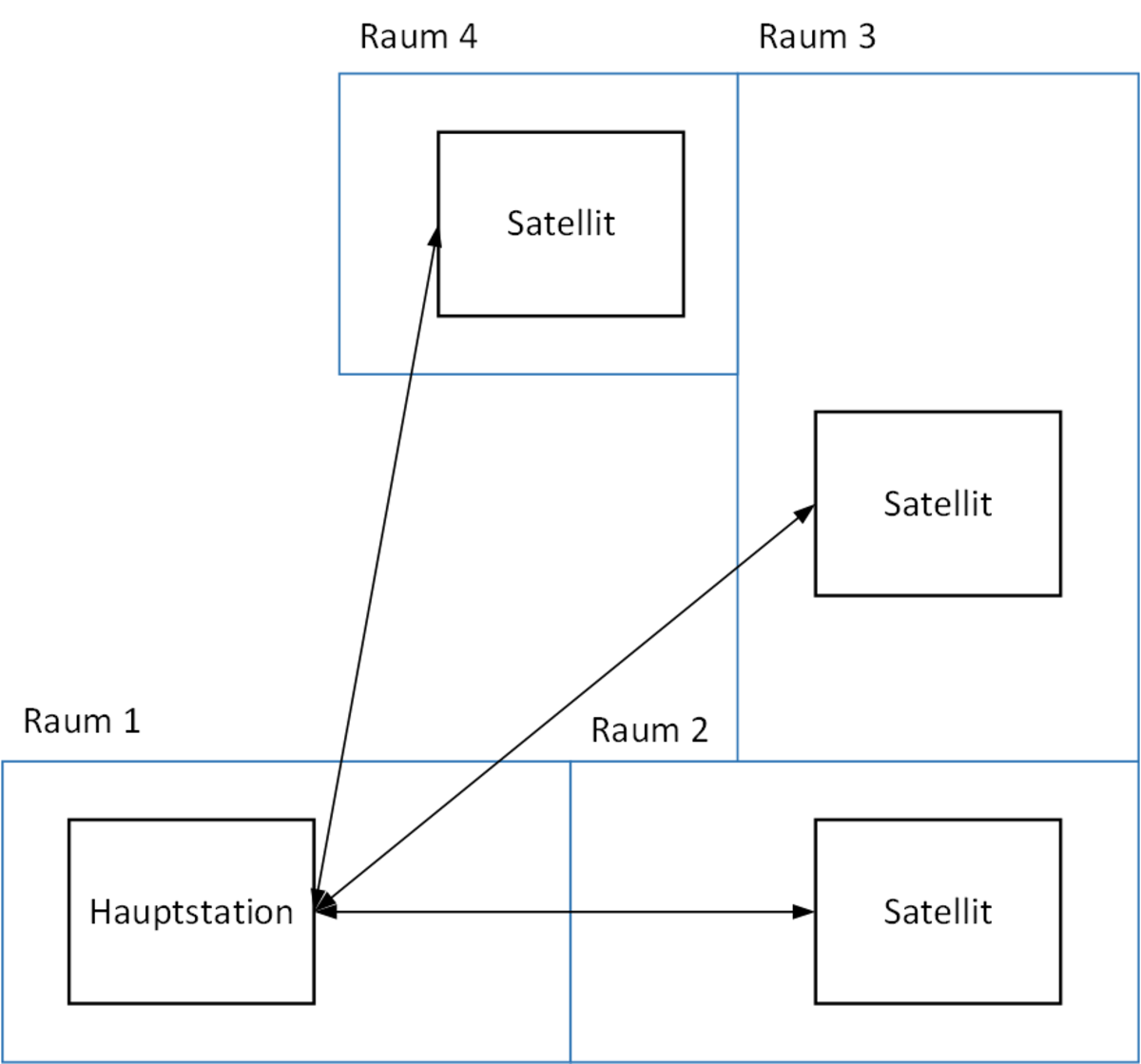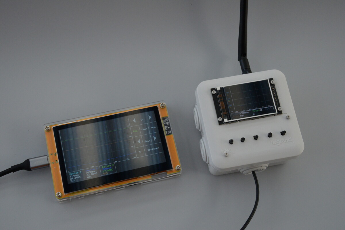 Während die Satelliten immer ihre eigenen Messwerte anzeigen, können bis zu 6 Satelliten mit der Hauptstation Verbunden werden. Diese sammelt und visualisiert dann deren Messwertverlauf. Dazu werden alle 5 Minuten die Messdaten aller Satelliten gesammelt.