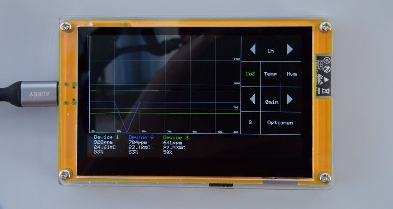 In diesem Projekt wird ein Prototyp für ein zentrales und lokales Messgerät entwickelt, das die zeitliche Entwicklung von Luftfeuchtigkeit, Raumtemperatur und CO2-Gehalt in verschiedenen Räumen visualisiert.