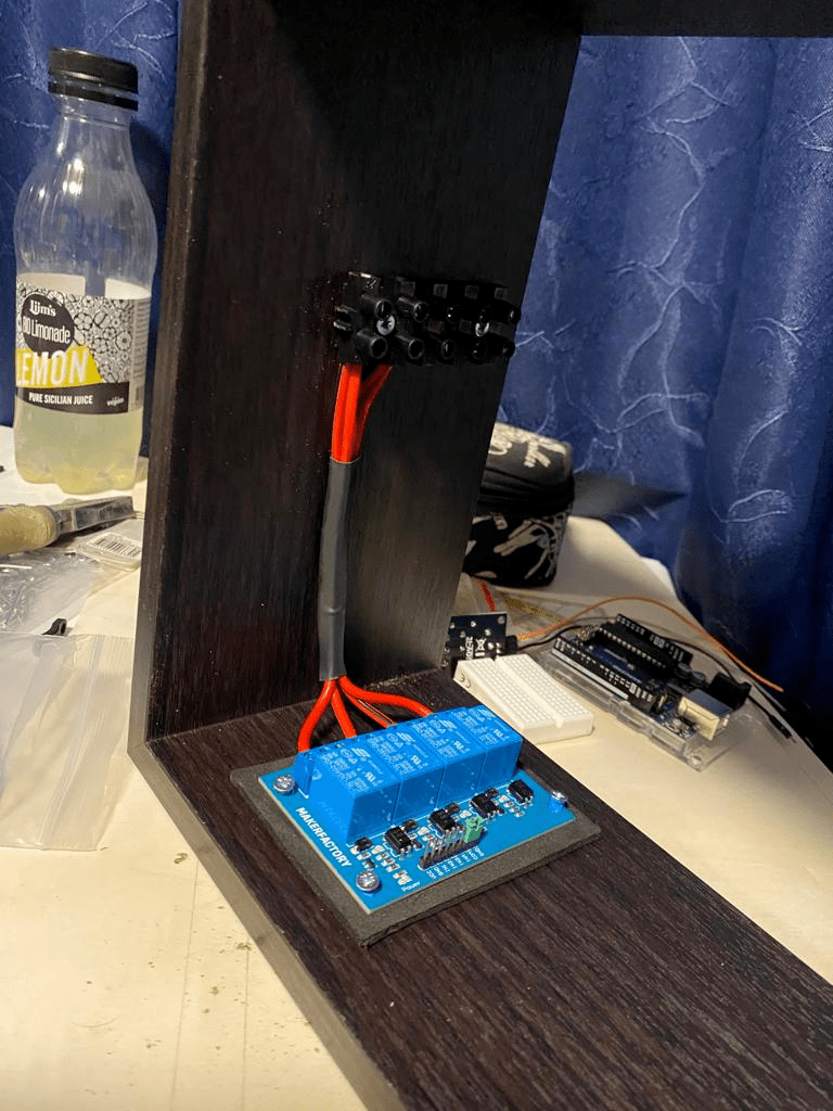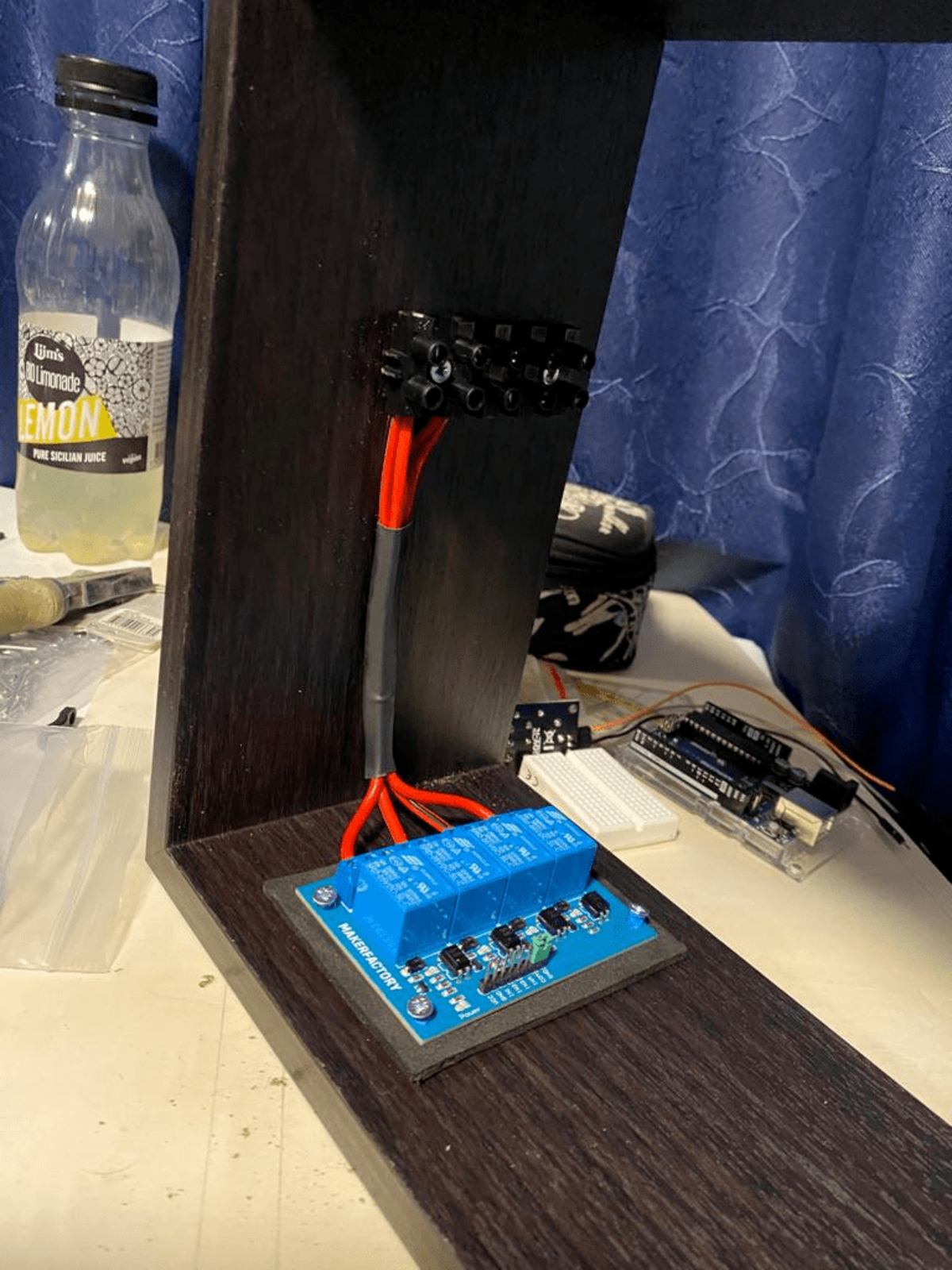 Die Umsetzung der Idee erfolgt mit einem Arduino Uno Board, der als zentraler Kern dient. Sprachbefehle und Smartphone ermöglichen dem Nutzer, beliebige Steckdosen oder Beleuchtungen bequem zu steuern. Das Projekt wird hier anhand eines Models sinnbildlich dargestellt.
