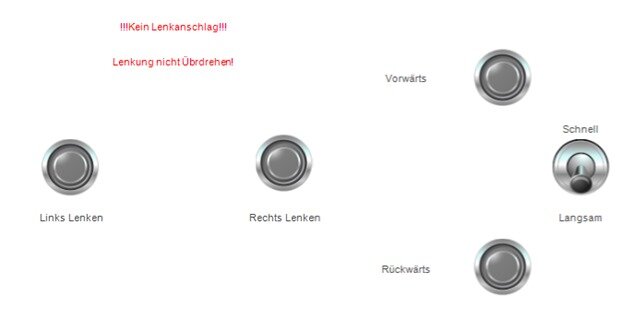 Es verfügt über eine selbsterklärende Bedieneroberfläche, mit welcher es gesteuert wird. Mann kann vorwärts und rückwärts fahren sowie nach Links und Rechts lenken. Außerdem kann man auswählen, ob man schnell oder langsam fahren möchte.