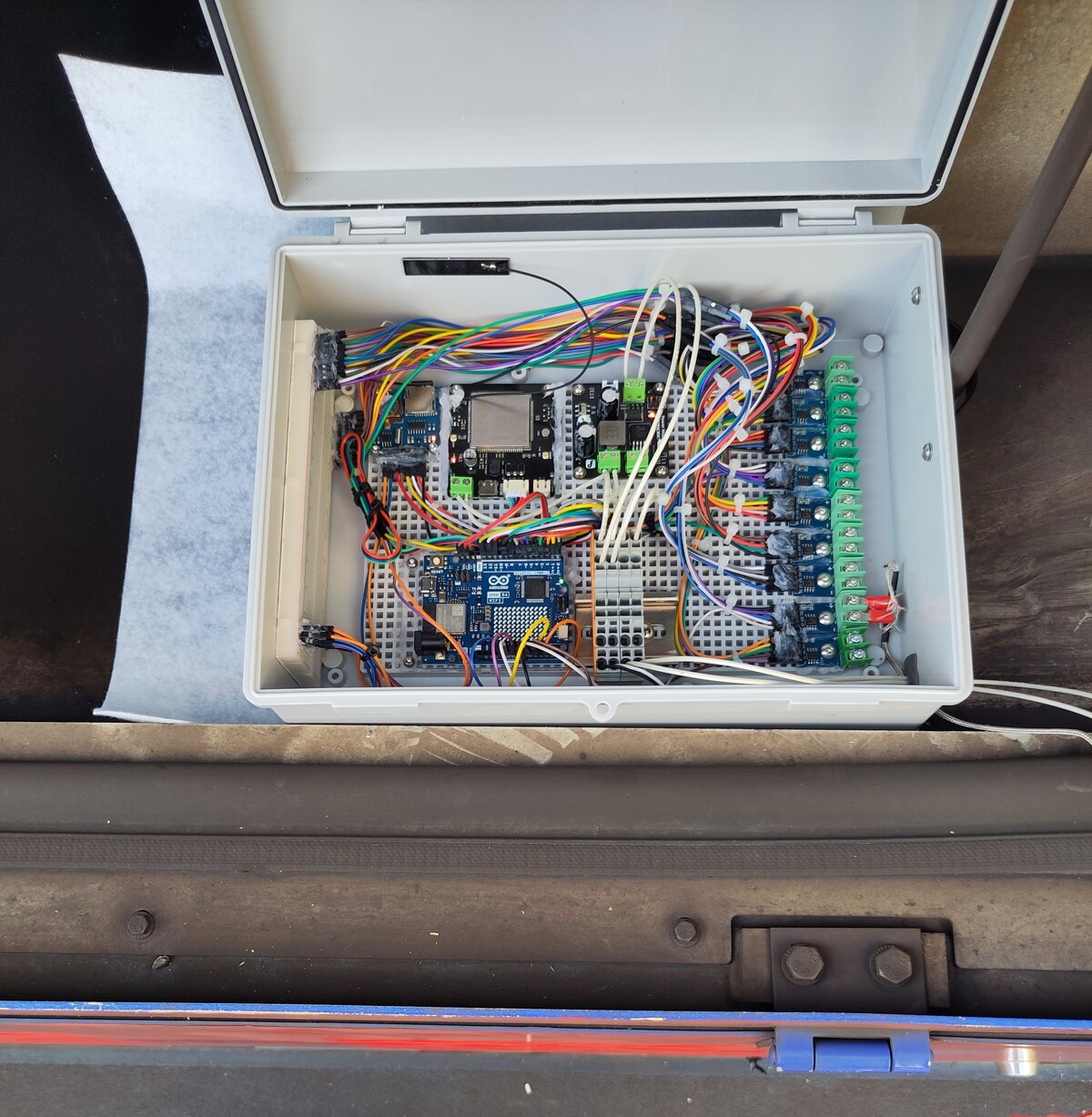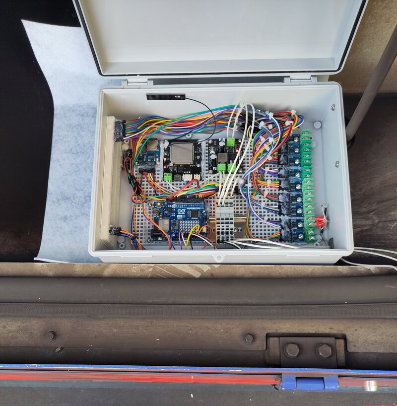 Ausserdem soll die LED-Matrix des Arduino genutzt werden, um Fehlercodes direkt an der Box anzuzeigen. In Google Sheets sollen diese danach auch angezeigt werden damit klar ist wenn etwas defekt ist. Nach dem festen Einbau auf der Lok wird beobachtet, wie stabil die Box unter starken Vibrationen arbeitet, um bei Bedarf weitere Optimierungen vorzunehmen um die dadurch resultierende schäden zu minimieren.