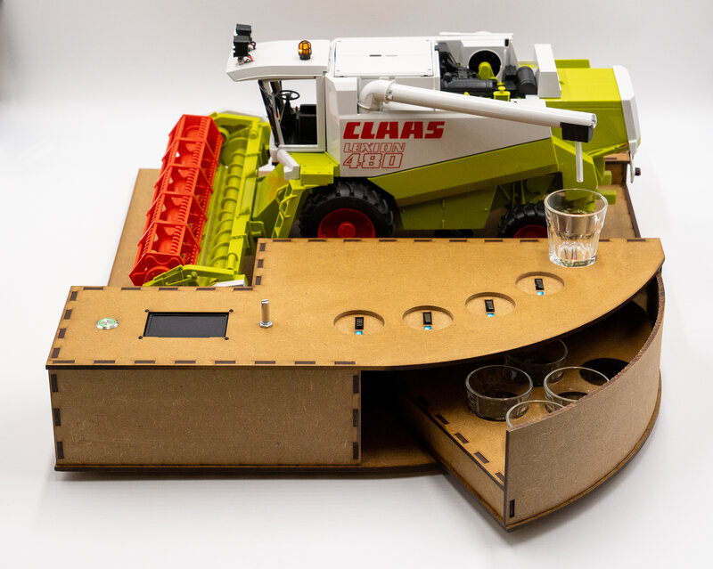 Der ShotBot ist ein automatisierter Shotspender im Mähdrescher-Design. Durch die Kombination von Sensorik, Mikrocontroller-Steuerung sowie mechanischen Elementen wie Servomotor und Pumpe schenkt mein System Milliliter genau Spirituosen aus. Die vorliegende Diplomarbeit beschreibt den vollständigen Entwicklungsprozess, inklusive Planung, Elektronikdesign, Software und dem mechanischen Aufbau.