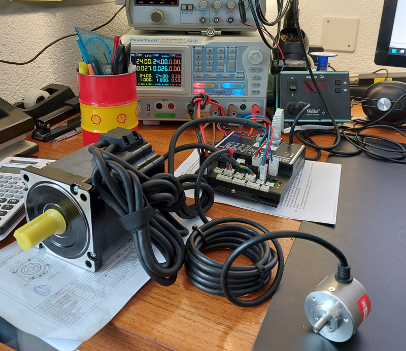 - Eine Maxon zub MiniMACS6-Motorensteuerung übernimmt die Auswertung des Encodersignals, die Verarbeitung sowie den Antrieb des Schrittmotors.