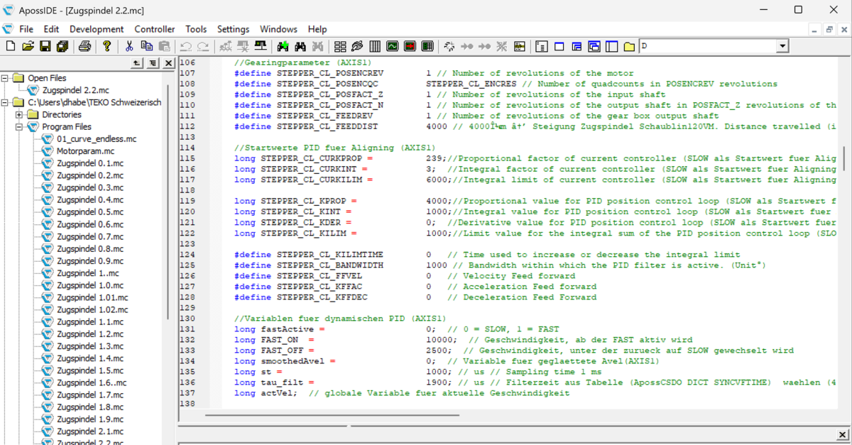 - Ein Programm in ApossC mit integrieter PID-Motorenregelung für die Motorensteuerung