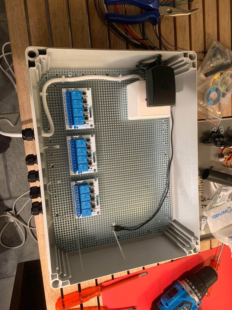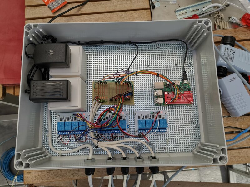 Der RaspberryPi wurde mit Python programmiert und steuert die Ventile, mit den Einstellungen in der App, über die Relais an.