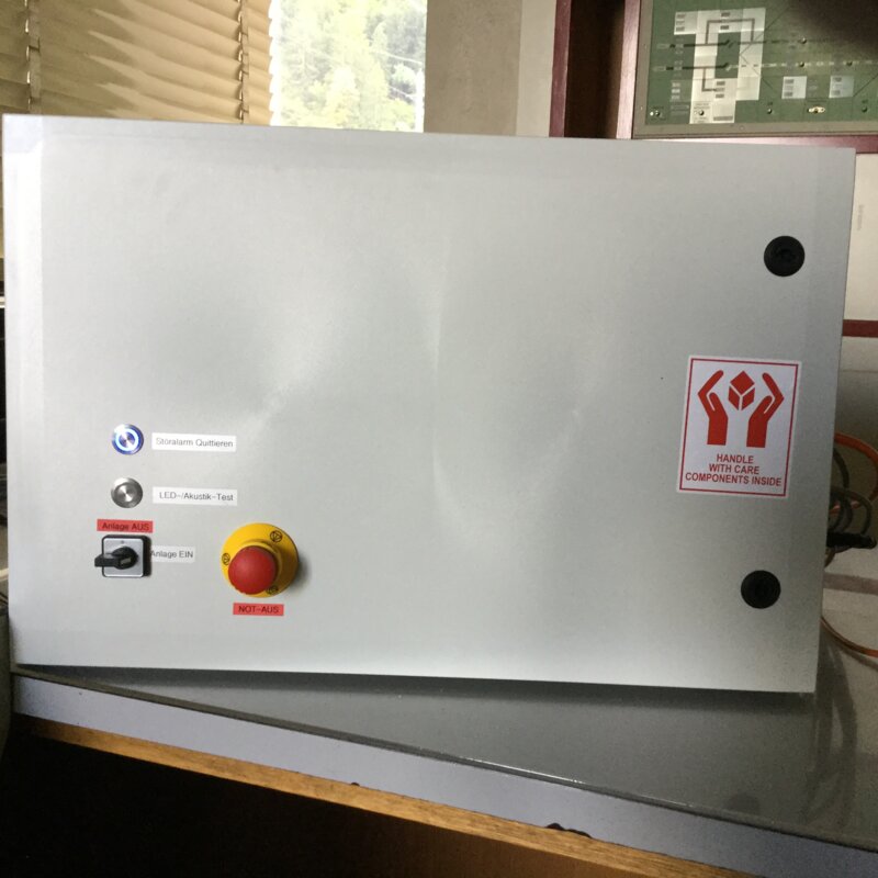 Mit diesem Prototyp ist eine Grundlage erschaffen worden, welche nun an der scharfen Anlage mit den verantwortlichen Personen getestet werden muss. Der Lichtsensor konnte noch nicht in das Programm eingebunden werden. Dies ist die einzige grössere Abweichung zu den gesetzten Zielen.