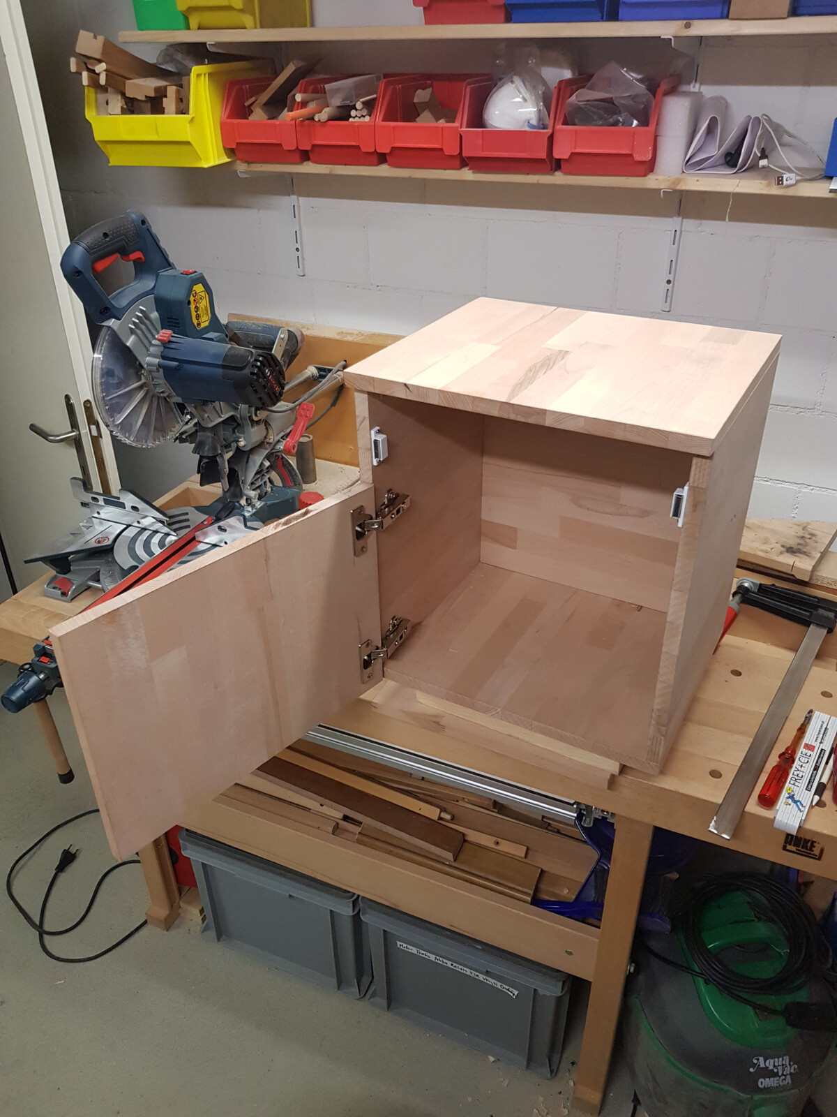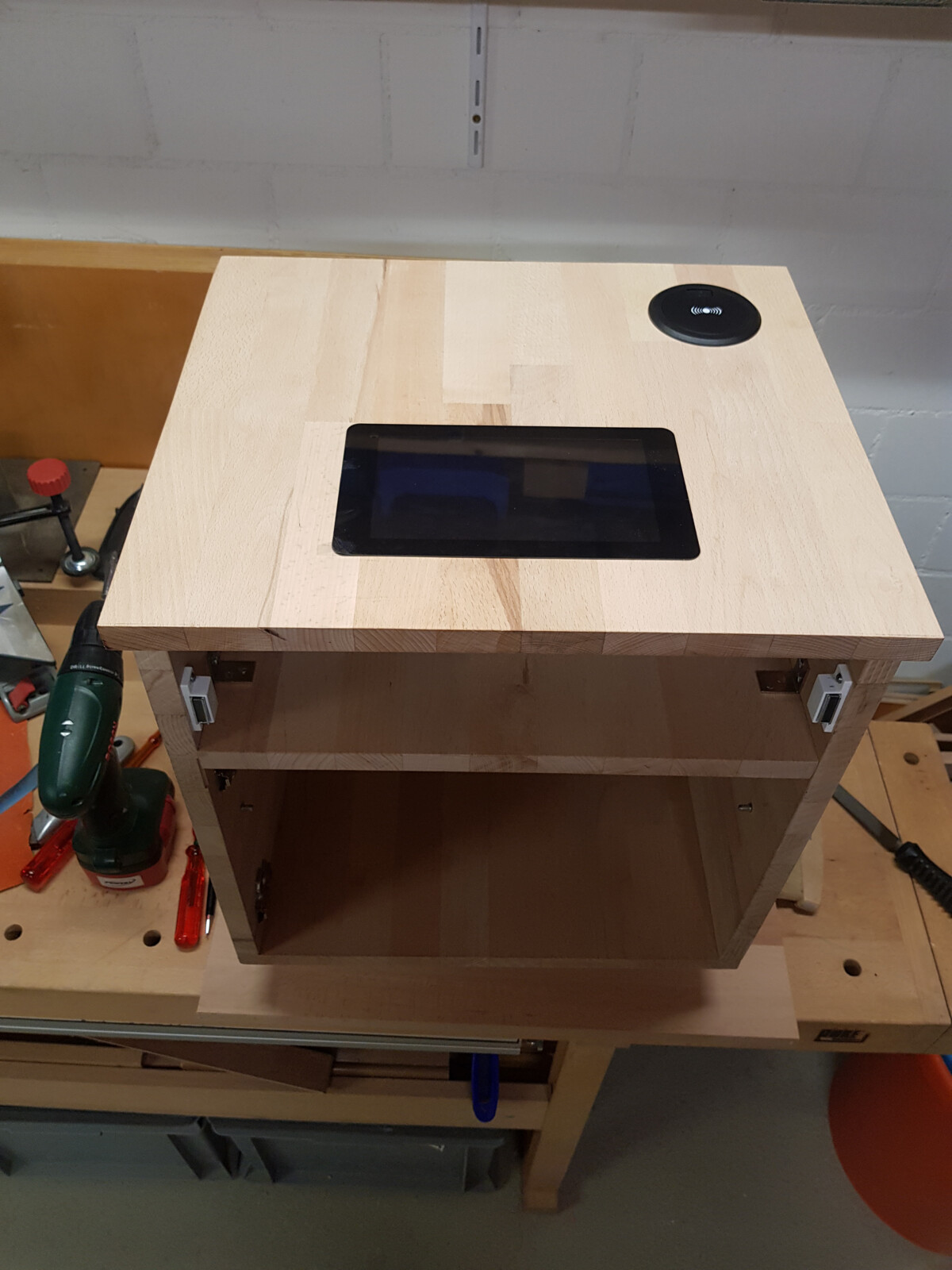 Während der Planung habe ich mir Gedanken darüber gemacht, welche Materialien ich benötige. Mit dieser Materialliste konnte ich mir dann alle wichtigen Komponenten beschaffen. Zu dieser Zeit habe ich mich viel im Conrad aufgehalten, da das Angebot für solche Projekte sehr gross ist. Als ich die Komponenten für den Bau meines Nachttisches zusammen hatte, konnte ich mit der Realisierung meiner Arbeit starten.