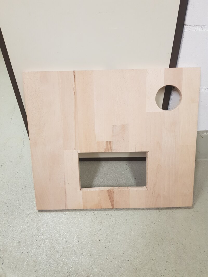 Als die Planung abgeschlossen war, konnte ich mit der Projektrealisierung starten. Diese Phase hatte ich am liebsten, da ich gerne praktische Arbeiten erledige. Ich habe im AutoCAD Skizzen von meinem Nachttisch erstellt. Danach konnte ich das Holz auf die richtigen Masse zuschneiden und alles miteinander verbinden. Die Elektrokomponenten habe ich zum Schluss eingebaut und alles verdrahtet.