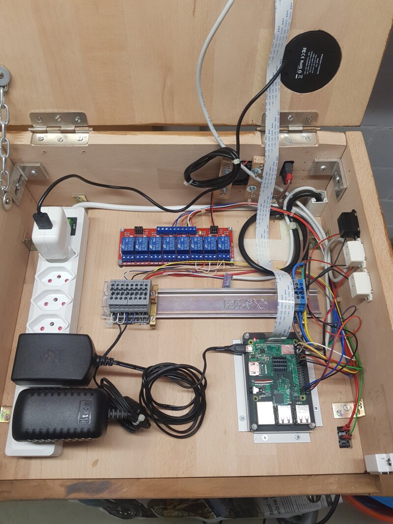 Diplomarbeit interaktiver Nachttisch von Lukas Wesseling In dieser Onlinepublikation stelle ich meine Diplomarbeit für den Studiengang Dipl. Techniker HF Elektrotechnik an der TEKO Luzern vor. Bei meiner Arbeit handelt es sich um einen Nachttisch, welcher mit Hilfe eines Raspberry Pi 3B ein "Gehirn" bekommt. Mit der Programmoberfläche Node-Red konnten Programme und Konfigurationen am Raspberry Pi relativ einfach vorgenommen werden und eine Arbeit schaffen, welche sich sehen lässt. Das eingebaute Display zeigt Informationen über das Wetter und hat die Funktionen als Wecker und Lichtschalter. Falls Ihr Interesse geweckt ist, wird in der untenstehenden Publikation meine Arbeit genauer beschrieben und mit Bildern nachvollziehbar dargestellt. Am Ende ist meine Dokumentation zu der Diplomarbeit als PDF zum Download verfügbar.