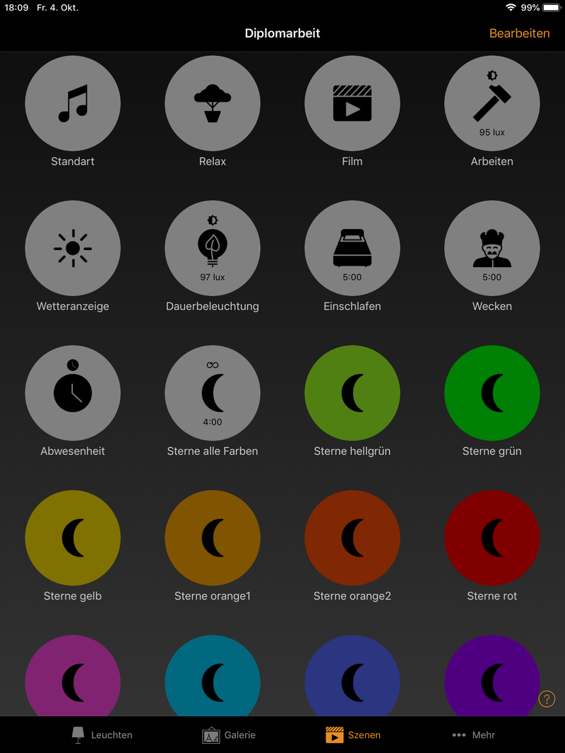 - Szenenauswahl: Relax, Film, Arbeiten & Standard individuell auf Kundenbedürfnis angepasst