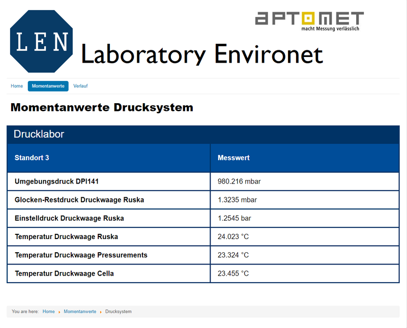 - Im Drucklabor wird der Umgebungsdruck, mehrere Temperaturen sowie der Rest- / Einstelldruck von Druckwaagen erfasst.
