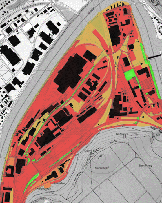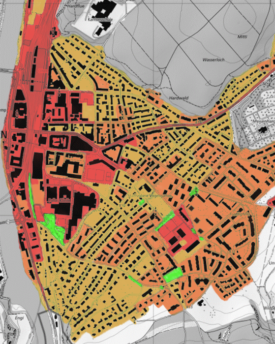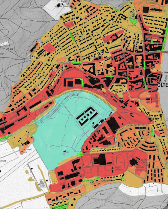 - Stadt Olten nach Nutzungsart in vier Zonen unterteilt
