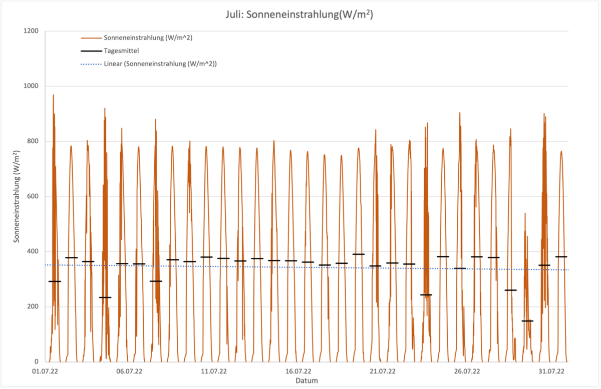 Zur Ermittlung der Machbarkeit, wurde der ungefähr zu erwartende Strombedarf und die Stromproduktion (über die Sonneneinstrahlungswerde der Wetterstation) berechnet. Anschliessend wurden die Werte einander gegenübergestellt und die Möglichkeit ermittelt, allfällige Engpässe mit den Batterien abzudecken.