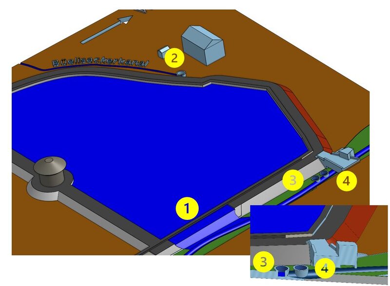 Um die Hochwasserschutzfunktion zu erhalten, muss das verbliebene, leerstehende Becken das Fassungsvolumen von 600.000m3 aufweisen. Die bereits bestehende Struktur kann genutzt werden, Bedingung für den Funktionserhalt ist jedoch die Erhöhung um ein berechnetes Mass. Einzig ein Seitenschenkel wird neu erstellt.