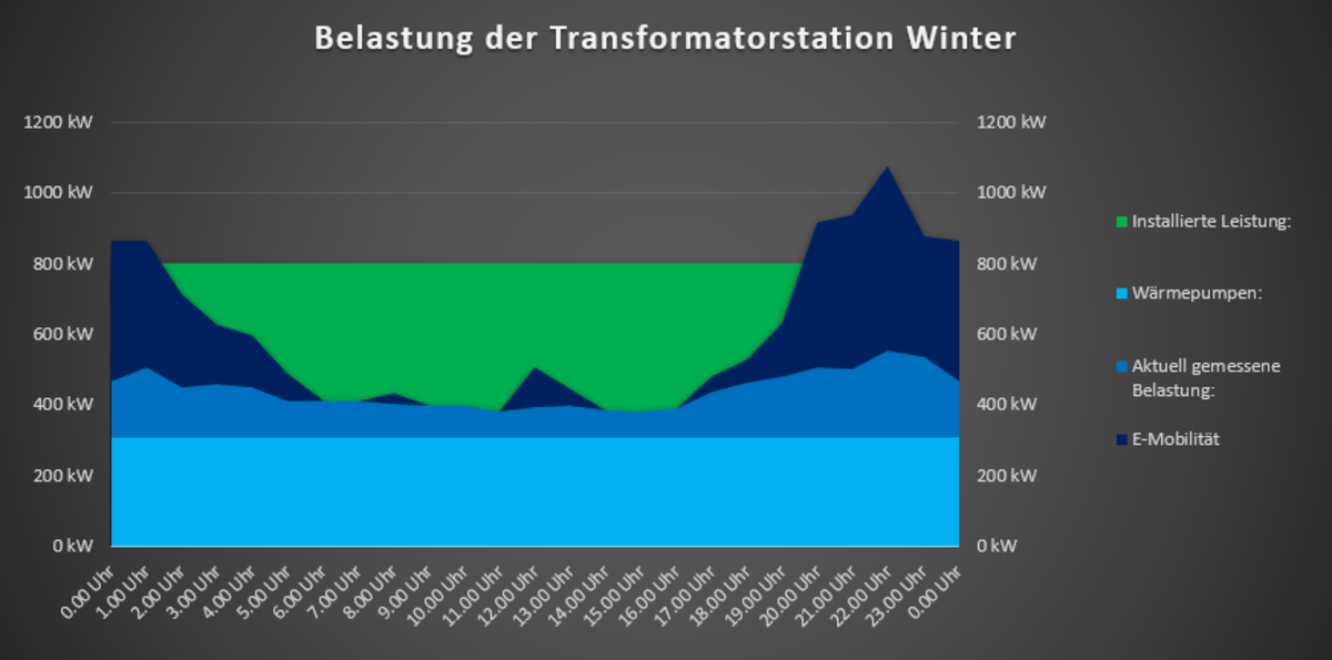Mein Weg zum Ziel war anfangs sehr viel auf Internet Recherche und dem Umsetzen des im Studium gelernten, aufgebaut. Später wurde die Arbeit plötzlich praktisch, als es darum ging, mit Hilfe der EWK Herzogenbuchsee in einem realen Quartier aufzuzeigen, wie viel Elektromobilität möglich ist, ohne die Infrastruktur auszubauen. Dazu wurde eine Umfrage in Papierform und in einer online Version durchgeführt, um das Nutzerverhalten zu analysieren. Dabei spielten beispielsweise die Anzahl Fahrzeuge, die Leistungsklassen und die möglichen Ladezeiträume eine grosse Rolle. Die Auswertung der Umfrage war schwerer als gedacht und auch zeitaufwendig. Trotzdem konnten fünf Szenarien aufgezeigt werden. Anhand des von der EWK gewählten Szenarios und den tatsächlichen Ladezeiträumen, die sich durch die Umfrage ergeben haben, konnten die erforderlichen Leistungen ermittelt werden, die zur Ladung benötigt würden. Aufgrund der realen Belastung der Transformatorstation und einem Korrekturfaktor für die Wärmepumpen, konnte der prozentuale Anteil an E-Mobilität berechnet werden, der im schlimmsten Fall (im Winter) noch möglich ist.