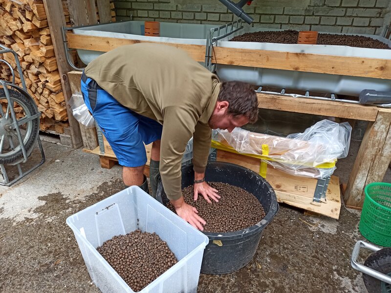 Als wir das System als bereit erachteten, kauften wir die Fische und transportiert diese zum Systemstandort nach Engelberg. Gleichzeitig mit den Fischen wurden die Pflanzen in das Aquaponiksystem eingesetzt. Das System haben wir einige Tage intensiv überwacht. Die Nitridwerte stiegen weiter auf ein sehr hohes Niveau. Nach einiger Zeit mussten die Fische umgesiedelt werden, da die Bakterienkultur länger brauchte, um sich einzupendeln. Dies auch aufgrund der herbstlich kalten Temperaturen. Die Fische verbleiben im benachbarten Teich, wo sie planmässig überwintern und grossgezogen werden.