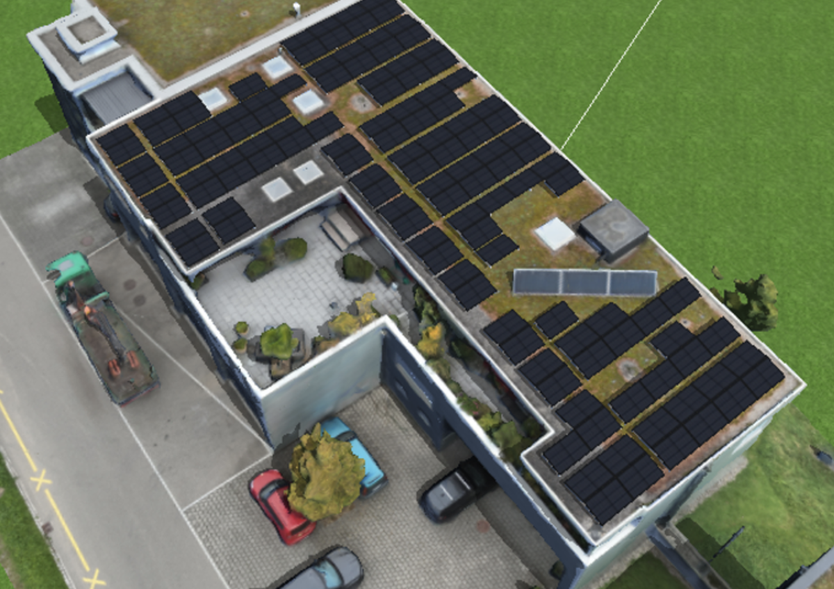 Die Arbeit hatte das Ziel, drei Varianten einer Photovoltaikanlage gegeneinander abzuwägen und die Lösung zu finden, die man aus technischen und wirtschaftlichen Gründen am besten umsetzen kann. Reale Gebäudedaten, die mittels Drohnenaufnahmen erfasst und in ein 3D-Modell überführt wurden, dienten als Grundlage dafür. Auf dieser Grundlage wurden in PV-SOL umfassende Simulationen erstellt, um die erwarteten Erträge und Verschattungen so präzise wie möglich abzubilden. Darüber hinaus wurde eine Wirtschaftlichkeitsberechnung über 25 Jahre erstellt, die Fördergelder, steuerliche Effekte und Betriebskosten einbezieht.
