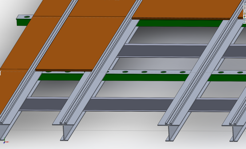 Auf den voll in die Gesamtstruktur integrierten Wellblechboden, wurde eine massive 15mm dicke Holzplatte installiert.