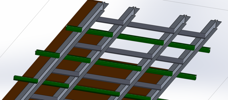 Auf die verbleibenden Framebeams werden vier durchlaufende H-Profile mit integrierten Sitzschienen genietet. Diese bilden in Verbindung mit den Querträgern die Primärstruktur des Fussbodens, welche ein Grossteil der Kräfte aufnimmt.