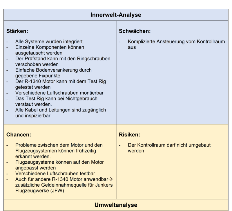 Die Ju-52 der Junkers Flugzeugwerke (JFW) ist aktuell mit dem BMW-Sternmotor des Typs 132A ausgestattet. Da BMW den Bau im Jahr 1944 eingestellt hatte, sind keine Ersatzteile mehr verfügbar. Dadurch wurde auch der Aufwand für einen längerfristigen Betrieb der BMW-Motoren von Jahr zu Jahr grösser und teurer. Die JFW hat sich deshalb entschieden, den BMW 132A durch einen Pratt & Whitney «Wasp»-Sternmotor des Typs R-1340 zu ersetzen. Im Rahmen der Diplomarbeit zum Dipl. Techniker HF Flugzeugtechnik wurde das Thema «Entwicklung eines Prüfstandes für den Pratt & Whitney Motor» mit der JFW als Auftraggeberin erarbeitet.
