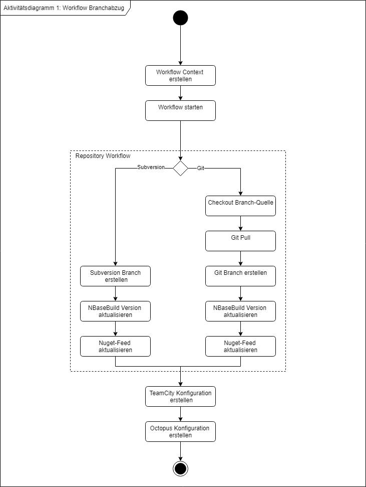 Ein solcher Branchabzug kommt mit einigen repetitiven Arbeiten in Subversion, Git, TeamCity und Octopus. Diese werden aktuell von Hand für jedes Repository durch einen Mitarbeiter im Infrastructure-Team durchgeführt.