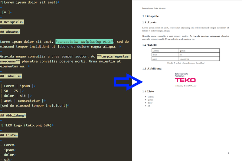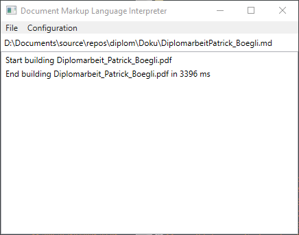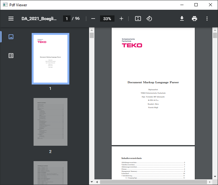 Im Rahmen meiner Diplomarbeit wurde ein Prototyp implementiert, welcher ermöglicht, ein PDF-Dokument mit der Auszeichnungssprache Markdown zu erstellen. Die Dokumentation meiner Diplomarbeit habe ich mit diesem Prototyp erstellt.