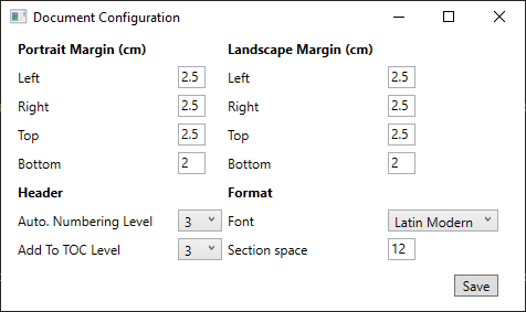 - Konfiguration der Schriftart, Abstand der Seitenränder und Absätze