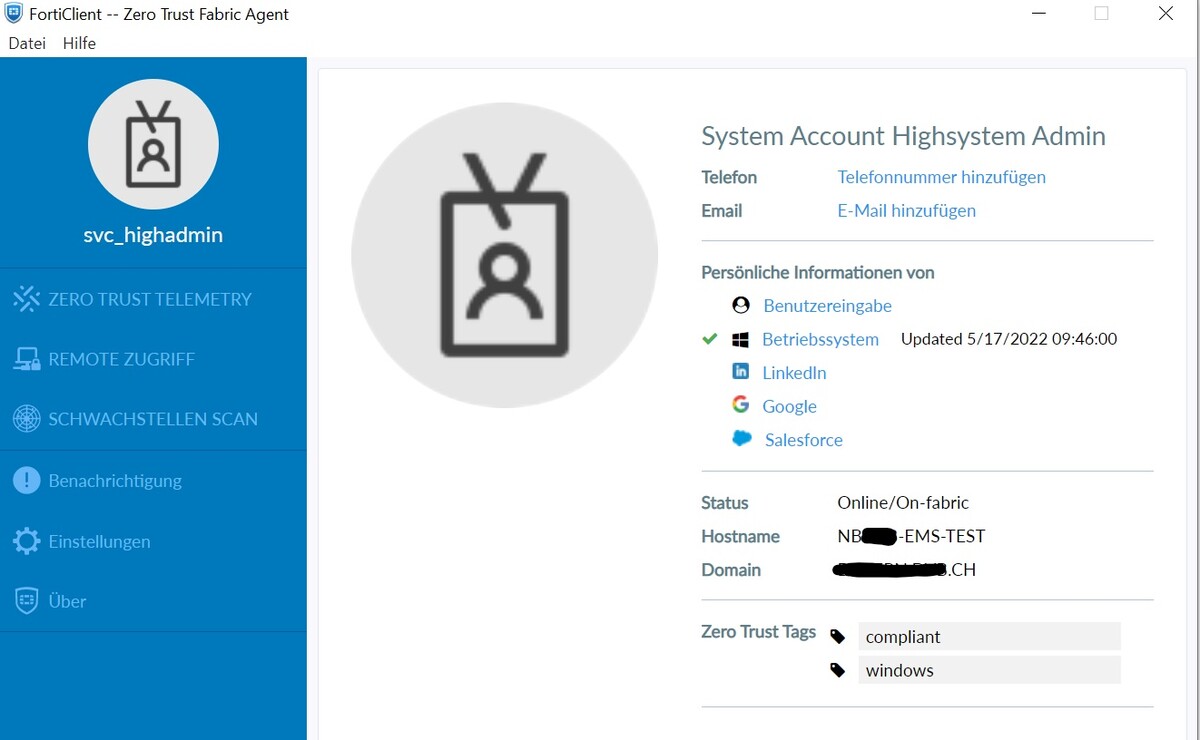 Während der Erarbeitung der Lösung tauchten allerdings Probleme auf den Geräten von Fortinet auf. Die Firewall, der EMS und die FortiClients auf den Geräten haben Bugs, auf dessen Lösung derzeit gewartet wird. Aufgrund dieser Probleme konnte die Lösung in der Firma nicht produktiv implementiert werden.
