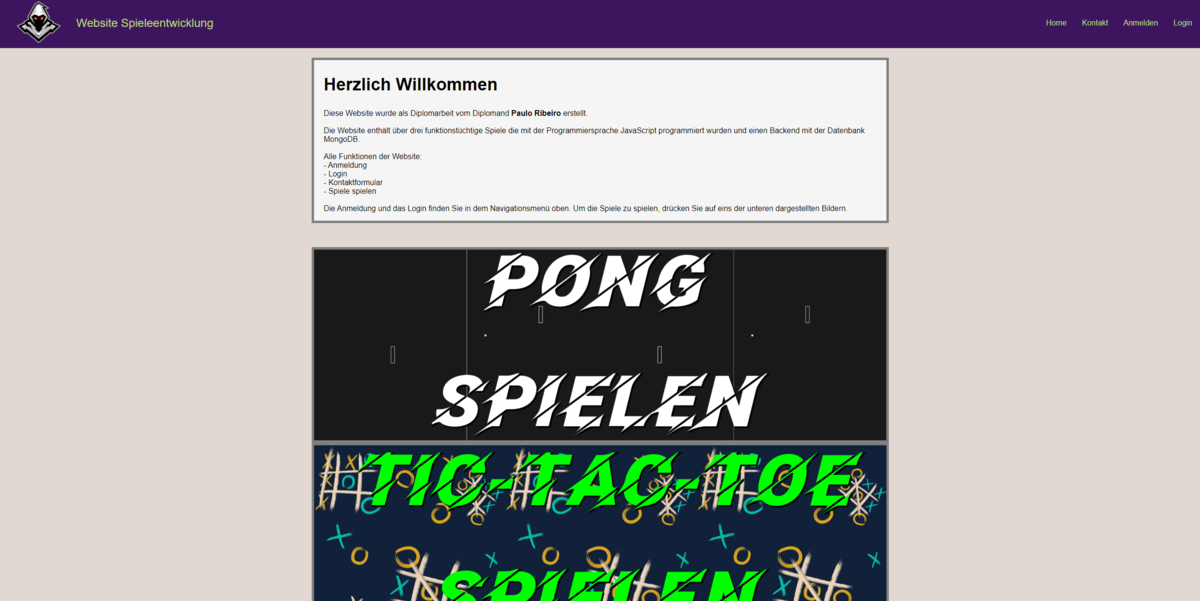 Als Endresultat erhielt ich eine laufende HTML Website, die innerhalb von maximal fünf Sekunden Ladezeit geladen wird, einen strukturierten Aufbau und ein einfaches Design besitzt. Drei Videospielen, die fehlerfrei spielbar sind und mit der Programmiersprache JavaScript programmiert wurden. Ein Backend, das mittels Node JS und dem Hauptmodul Express gestartet werden kann, sowie eine ausführliche Dokumentation der Diplomarbeit.