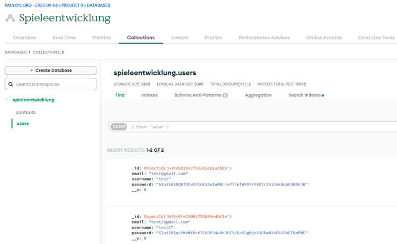 Das Backend beinhaltet die Verbindung zu der Datenbank MongoDB und die Funktionen für das Aufstarten des lokalen Servers, die Kontaktaufnahme, die Anmeldung und das Log-in des Benutzers. In der MongoDB Datenbank werden die Anmeldedaten der registrierten Benutzer gespeichert und sobald diese sich einloggen möchten, abgerufen. Nach erfolgreichem Log-in werden die Benutzer in einen Mitgliedsbereich umgeleitet.