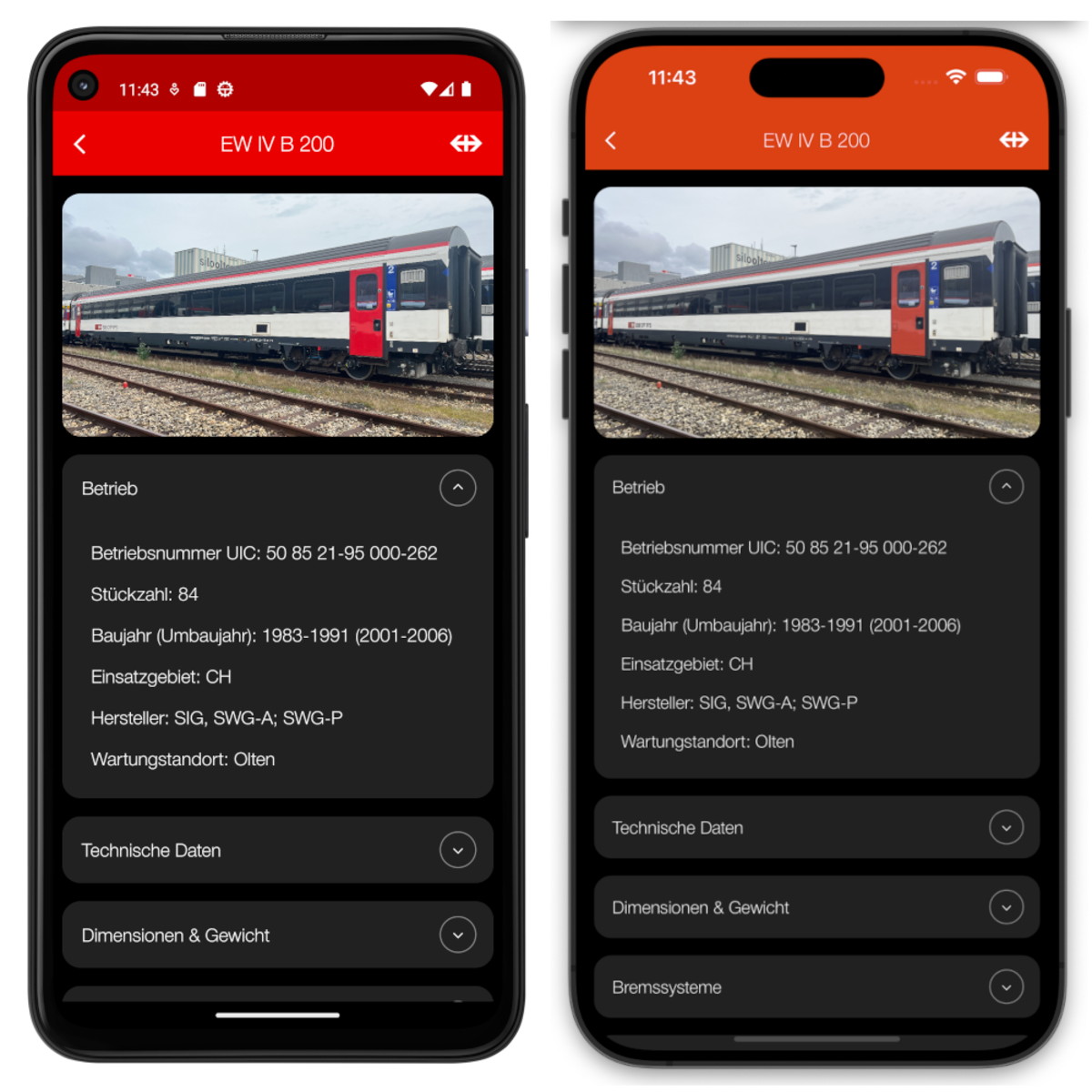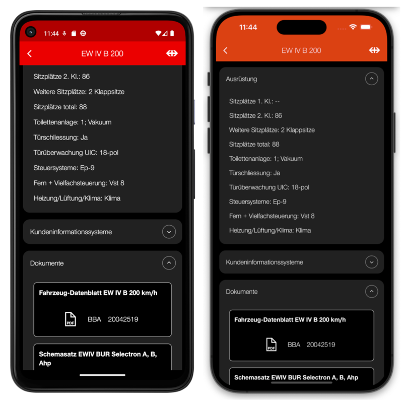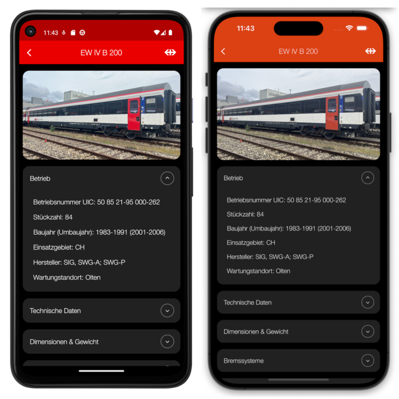 Mobile App für Fahrzeuge des SBB Personenverkehr