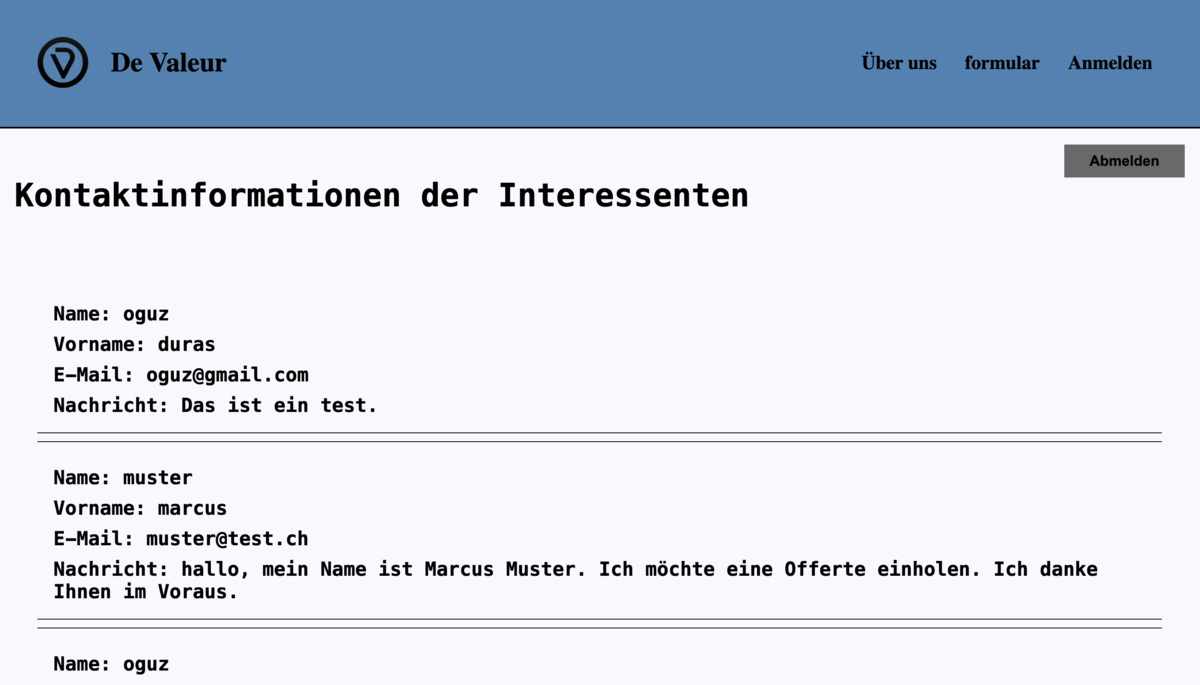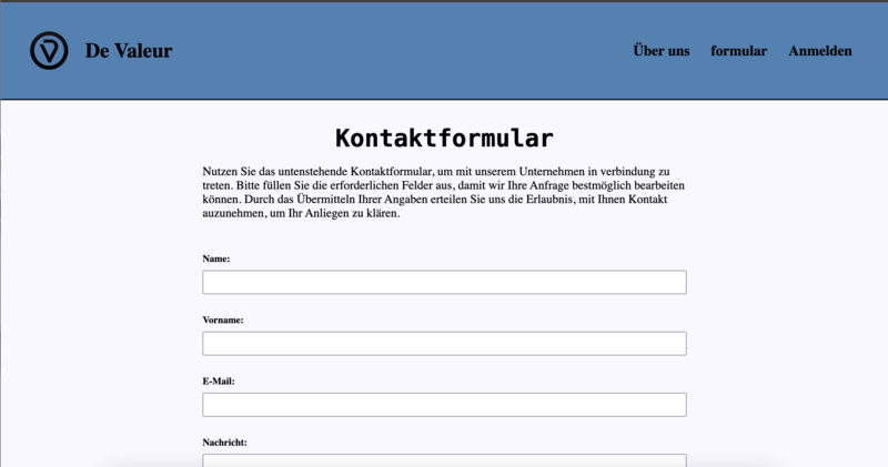 Dieses Projekt entstand aus dem Bedarf des Auftraggebers M.Y., der ein Start-up im Bereich Consulting gründen möchte. Benötigt wurde eine Webapplikation zur Kontaktaufnahme mit potenziellen Kunden. Die Anwendung sollte ein Kontaktformular erhalten, über das Kundendaten erfasst und in einer Datenbank gespeichert werden, die ausschliesslich für den Administrator sichtbar ist. Ziel war es, eine moderne und benutzerfreundliche Webapplikation zu schaffen, die den Start des Unternehmens unterstützt.