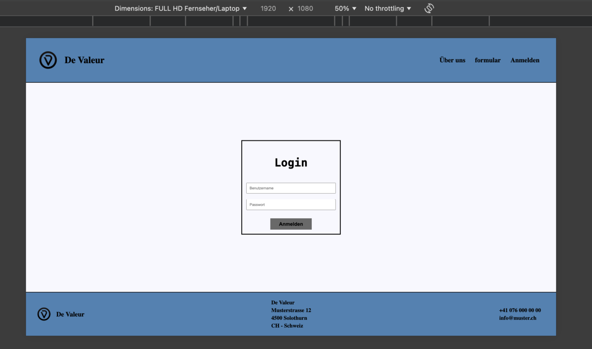 Zu Beginn wurden Mock-ups erstellt, um das Design und die Funktionalitäten der Webapplikation visuell darzustellen. Nach Absprache mit dem Auftraggeber diente die ausgewählte Variante als Grundlage für die Entwicklung. Anschliessend wurde im Quellentext-Editor Node.js und Express.js konfiguriert und anschliessend mit dem Frontend begonnen. Danach wurde ein Datenbank-Server mit MariaDB eingerichtet und die Verbindung zum Node.js-Server hergestellt. Ein Kontaktformular wurde zuvor im Frontend implementiert, um die Kundendaten über eine POST-Methode an den Datenbank-Server zu senden. Zusätzlich wurde eine Oberfläche für den Administrator entwickelt, über die die gesammelten Kundendaten ersichtlich sind.