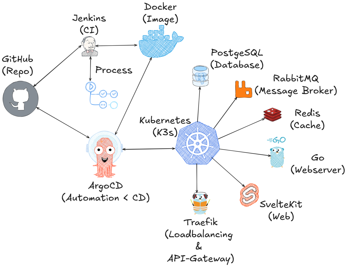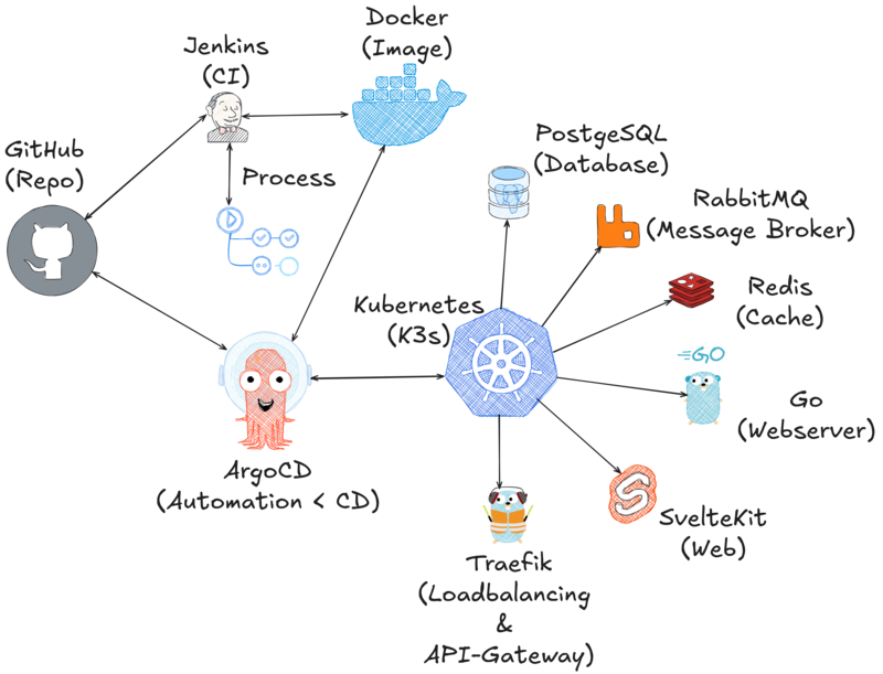 DevSeConnect kombiniert Jenkins, ArgoCD und K3s, um reibungslose und automatisierte Deployments zu ermöglichen. Der in K3s integrierte Ingress-Controller Traefik vereinfacht die Netzwerkverwaltung innerhalb des Clusters und sorgt für einen effizienten und sicheren Zugriff. Die containerisierte Bereitstellung über Docker gewährleistet konsistente und wiederholbare Deployments, die eine zuverlässige Grundlage für stabile Anwendungen bieten.