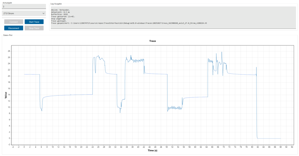 TraceLink ändert das: Die Software liest Antriebsdaten direkt aus, zeigt sie live an und speichert sie in einem offenen, wissenschaftlich bewährten Format (HDF5). So entstehen neue Möglichkeiten für Analyse, Qualitätssicherung und Entwicklung – ein wichtiger Schritt Richtung digitaler Transparenz in der Industrie 4.0.