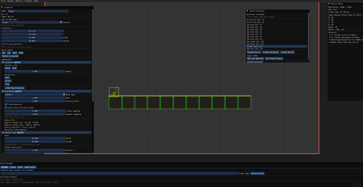 Das Ziel war es, eine 2D Game Engine von Grund auf zu entwickeln, die funktionsfähig ist und gleichzeitig Einblicke in die Architektur moderner Game Engines gibt.