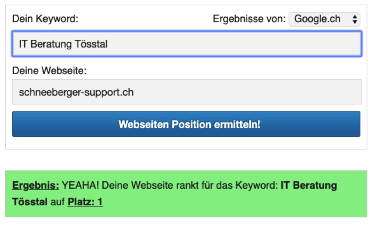 Der Auftrag für dieses Projekt wurde mir von meiner Firma Schneeberger Support Tösstal zugewiesen und hatte den Zweck die Webpräsenz zu stärken um die Kundenakquisition zu vereinfachen und den dadurch entstehenden Profit zu erhöhen. Um dieses Ziel zu erreichen gab es nur einen effizienten Weg: Die SEO für die Webseite www.schneeberger-support.ch zu verbessern.