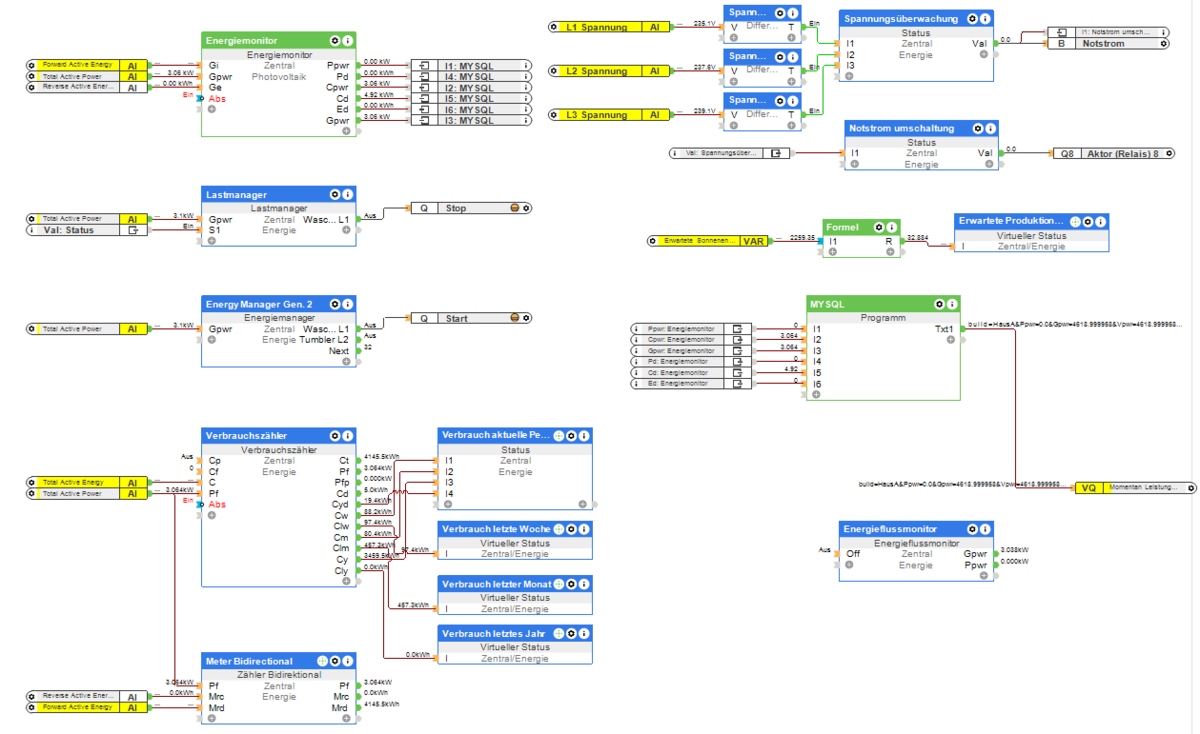 Für diese Diplomarbeit habe ich ein Programm geschrieben, welches Daten wie Verbrauch und Produktion von Hausautomationssystemen wie Loxone oder KNX auf einen Server sendet und diese dort auswertet. Im Moment gibt es auf dem Markt nur die Möglichkeit von jedem Hersteller von Wechselrichtern oder Managementsystemen einzeln die Daten online zu verfolgen. Jedoch gibt es, soweit ich im Internet recherchiert und bei diversen Firmen angefragt habe, keine Möglichkeit Energiedaten von verschiedenen Systemen auf einer Plattform zu sammeln und anzuzeigen.