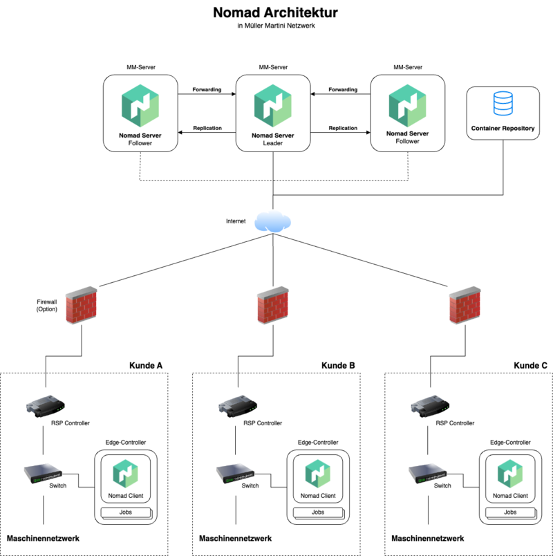 Die Edge Controller der Müller Martini AG verbinden die Maschinensteuerungen mit dem Kundennetzwerk & dem Müller Martini Zentralserver. Die Herausforderung liegt in der aufwendigen Wartung, da Updates für jede einzelne Maschine manuell durchgeführt werden müssen. Ein Proof of Concept wurde entwickelt, um zu prüfen, ob die Nutzung von Containervirtualisierung & Orchestrierung diesen Aufwand reduzieren kann.
