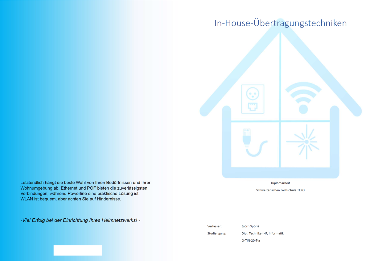 In einer Welt, die zunehmend durch digitale Vernetzung geprägt ist, steht und fällt alles mit der Auswahl der optimalen Übertragungstechnologie innerhalb der eigenen vier Wände. Diese Diplomarbeit taucht tief ein in die Welt der In-House-Übertragungstechniken, von Ethernet und Wi-Fi über Powerline bis hin zur Polymer-Optischen Faser (POF). Doch sie bleibt nicht bei der blossen Darstellung der Technologien stehen: Sie beleuchtet kritisch die Kosten, zeichnet ein klares Bild von Übertragungsqualität, Installationsaufwand und Lebensdauer und untermauert ihre Erkenntnisse mit realen Leistungsdaten. So schliesst diese Arbeit nicht nur Informationslücken, sondern wird zum unverzichtbaren Kompass für Eigentümer, die ihre In-House-Kommunikation nicht dem Zufall überlassen wollen. Bereiten Sie sich vor, die Weichen für die Zukunft Ihrer internen Kommunikationswege neu zu stellen und entdecken Sie die Möglichkeiten, die sich Ihnen nun eröffnen!