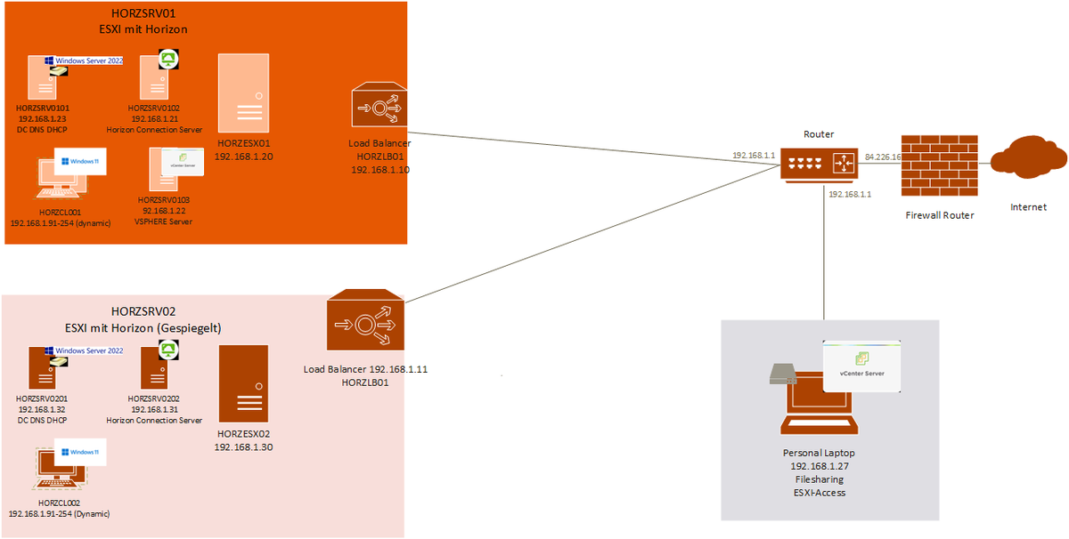 • Lokaler Server mit Terminalserverlösung von VMware und NGINX Loadbalancer.