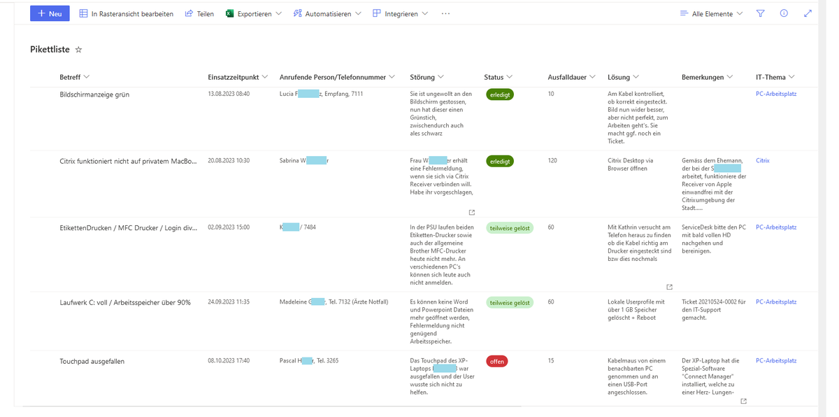 Die Dokumentationsplattform für Pikettdienste wurde gemäss konzeptioneller Erarbeitung umgesetzt. Der Service konnte mit SharePoint zweckmässig aufgebaut und konfiguriert werden. Zusätzlich wurden Accessoires wie eine Schritt-für-Schritt-Bedienungsanleitung, eine analoge Umgehungslösung, ein Pikett-Handbuch, und ein Notfallnummernkonzept erstellt, um den Anwendern weitere Hilfsmittel mitgeben zu können.