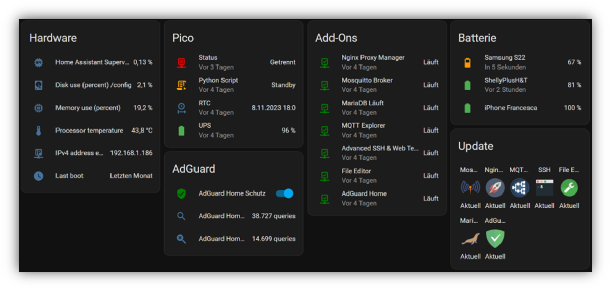 Mit der Arbeit konnte ich mir unter Beweis stellen, dass ich in der Zukunft die Anforderungen als dipl. Systemtechniker/HF Informatik erfülle. Alle Rollen eines reellen Projektes wurden durchgespielt. Vom einstudieren in die Software Home-Assistant, über das planen und konzeptionieren, bis hin zum Engineering und Realisation des Projektes. Es wurde ein Projekt aus dem Boden gestampft und !Live in Betrieb genommen. Somit möchte ich konstatieren, dass für mich dieser Studiengang als Erfolgreich erachtet wird und ich mich für die Lernreiche Zeit bei den Mitwirkenden der TEKO bedanken möchte. Es war eine Erfahrungsreiche Zeit!