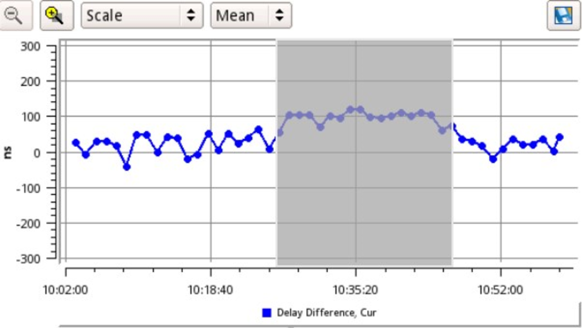 Es wurde untersucht wie sich der Main und Backup Grand Master bei einem Ausfall im Detail verhalten. Mit Hilfe einer GPS synchronisierten Slave Clock konnte das Delay während der Umschaltung in Nanosekunden genau gemessen werden.