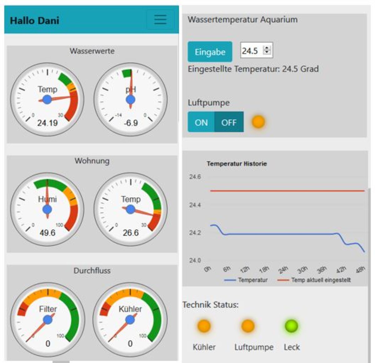 Automatisiertes Steuern und Monitoren eines Aquariensystems