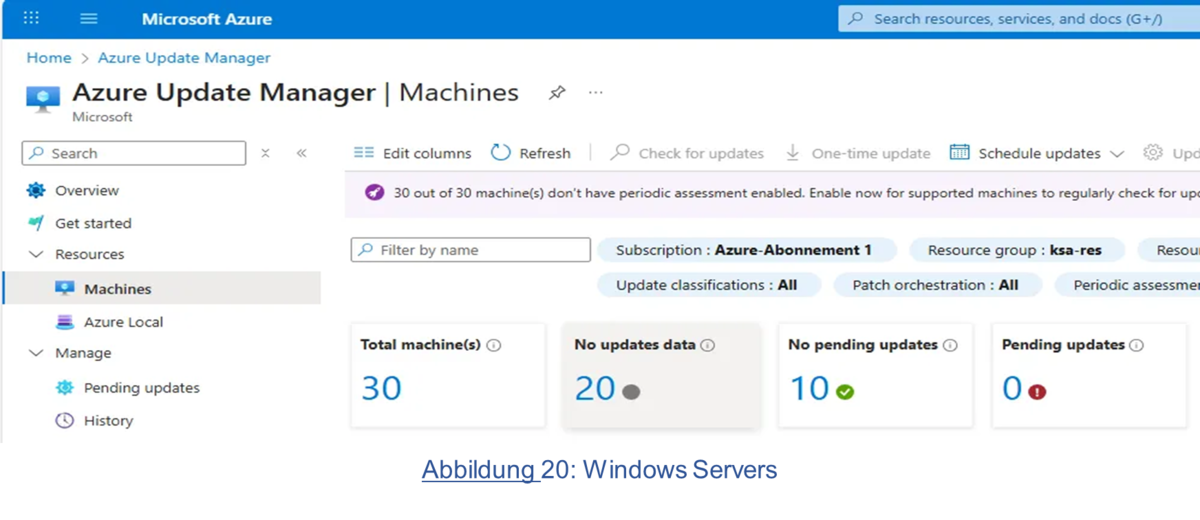 Die bisherige WSUS-Infrastruktur stellte eine zunehmend veraltete Lösung dar: Updates mussten manuell genehmigt, verteilt und kontrolliert werden. Dies führte zu einem hohen Administrationsaufwand und potenziellen Sicherheitslücken, da kritische Updates häufig mit Verzögerung installiert wurden. Im neuen Konzept wird die Update-Verteilung vollständig automatisiert, sowohl für 30 Server als auch für rund 80 Clients und unabhängig vom Standort über die Cloud gesteuert.