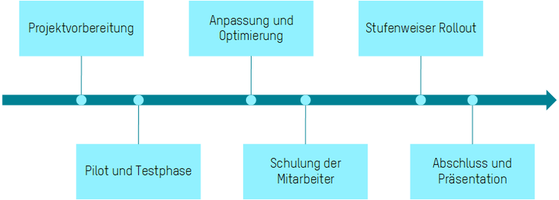 Für einen erfolgreichen Rollout, sind insbesondere eine begleitende Schulung der Mitarbeitenden sowie eine transparente Kommunikation entscheidend. Weitere Überlegungen betreffen mögliche Schnittstellen zu bestehenden IT-Systemen sowie die laufende Überprüfung der Systemnutzung nach der Einführung.