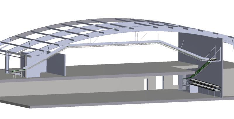 Nach der Ideenfindung und Rücksprache mit verschiedenen Lieferanten wurde in mehreren Ausarbeitungsschritten ein Konzept erstellt. Dabei wurden die Halterungen zur Deckenbefestigung der Förderbänder berechnet, der Linearmotor für die Sortierung dimensioniert und die Statik der Stahlhalle eingeschätzt. Zudem wurde ein Steuerungskonzept erstellt sowie die erforderlichen Massnahmen zur Erreichung der Maschinensicherheit ermittelt.